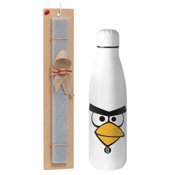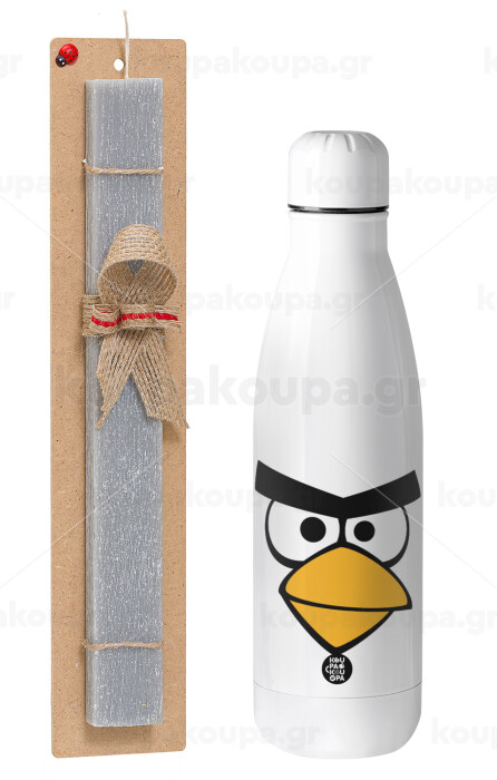 Angry birds eyes, Πασχαλινή Λαμπάδα με μεταλλικό παγούρι θερμός ανοξείδωτο (500ml) & κερί αρωματικό πλακέ (30cm) (ΓΚΡΙ)