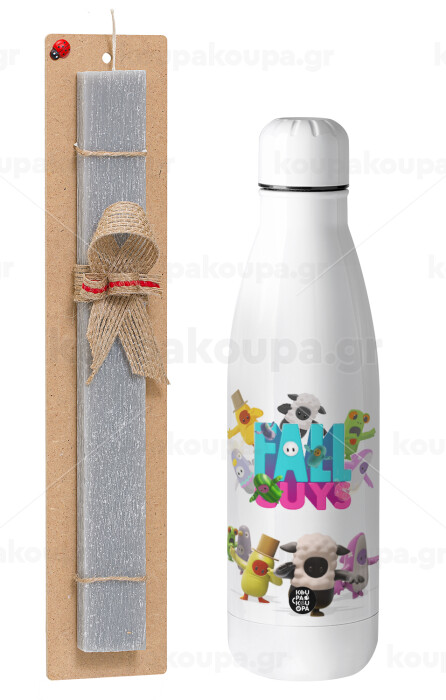 FALL GUYS, Πασχαλινή Λαμπάδα με μεταλλικό παγούρι θερμός ανοξείδωτο (500ml) & κερί αρωματικό πλακέ (30cm) (ΓΚΡΙ)