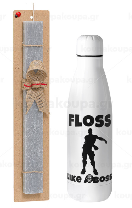 Fortnite Floss Like a Boss, Πασχαλινή Λαμπάδα με μεταλλικό παγούρι θερμός ανοξείδωτο (500ml) & κερί αρωματικό πλακέ (30cm) (ΓΚΡΙ)