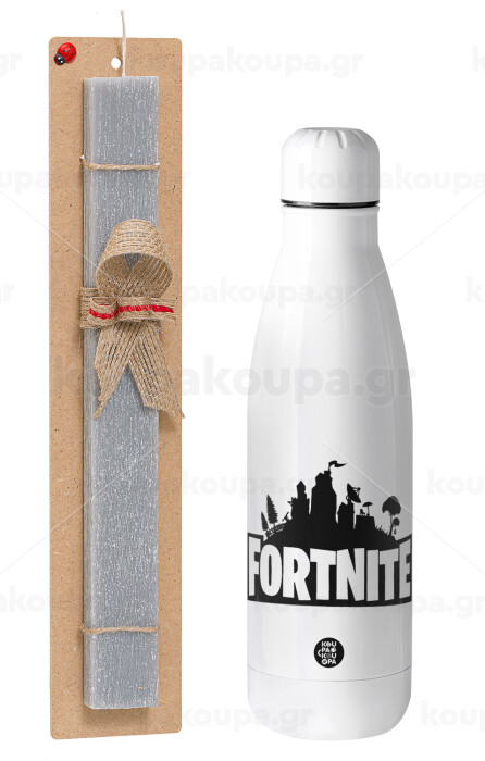 Fortnite, Πασχαλινή Λαμπάδα με μεταλλικό παγούρι θερμός ανοξείδωτο (500ml) & κερί αρωματικό πλακέ (30cm) (ΓΚΡΙ)