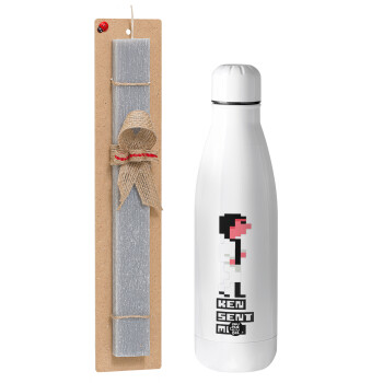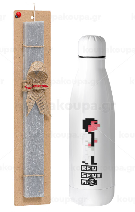 Ken sent me, Leisure Suit Larry, Πασχαλινή Λαμπάδα με μεταλλικό παγούρι θερμός ανοξείδωτο (500ml) & κερί αρωματικό πλακέ (30cm) (ΓΚΡΙ)