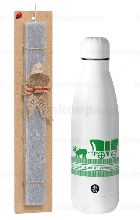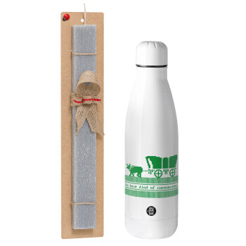 Oregon Trail, cov... edition, Πασχαλινή Λαμπάδα με μεταλλικό παγούρι θερμός ανοξείδωτο (500ml) & κερί αρωματικό πλακέ (30cm) (ΓΚΡΙ)