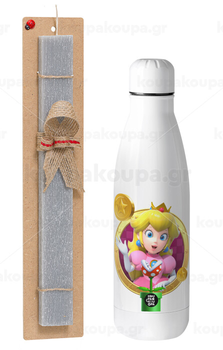 Princess Peach Toadstool, Πασχαλινή Λαμπάδα με μεταλλικό παγούρι θερμός ανοξείδωτο (500ml) & κερί αρωματικό πλακέ (30cm) (ΓΚΡΙ)