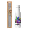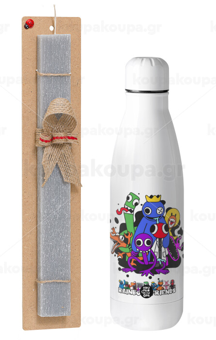 Rainbow friends, Πασχαλινή Λαμπάδα με μεταλλικό παγούρι θερμός ανοξείδωτο (500ml) & κερί αρωματικό πλακέ (30cm) (ΓΚΡΙ)