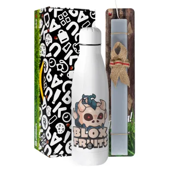 Roblox Blox Fruits, Πασχαλινή Λαμπάδα με μεταλλικό παγούρι θερμός ανοξείδωτο (500ml) & κερί αρωματικό πλακέ (30cm) (ΓΚΡΙ)