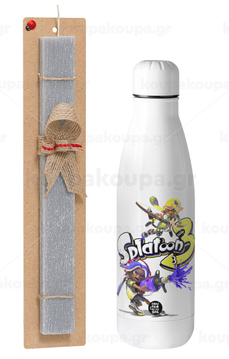 Splatoon 3, Πασχαλινή Λαμπάδα με μεταλλικό παγούρι θερμός ανοξείδωτο (500ml) & κερί αρωματικό πλακέ (30cm) (ΓΚΡΙ)