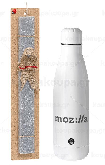 moz:lla, Πασχαλινή Λαμπάδα με μεταλλικό παγούρι θερμός ανοξείδωτο (500ml) & κερί αρωματικό πλακέ (30cm) (ΓΚΡΙ)