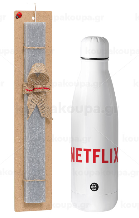 Netflix, Πασχαλινή Λαμπάδα με μεταλλικό παγούρι θερμός ανοξείδωτο (500ml) & κερί αρωματικό πλακέ (30cm) (ΓΚΡΙ)