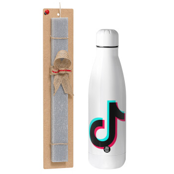 tik tok, Πασχαλινή Λαμπάδα με μεταλλικό παγούρι θερμός ανοξείδωτο (500ml) & κερί αρωματικό πλακέ (30cm) (ΓΚΡΙ)