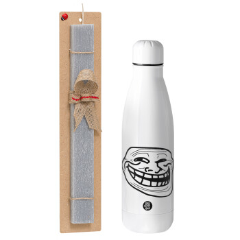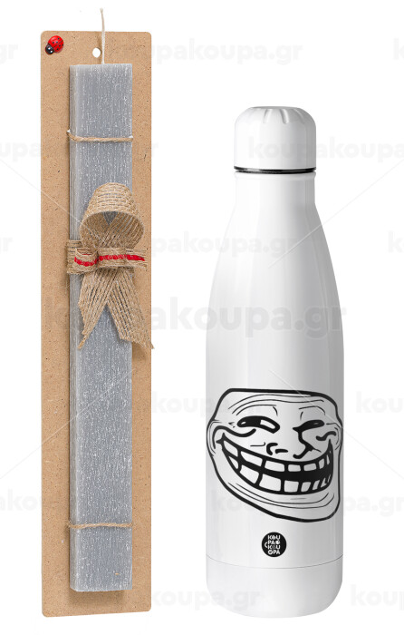 Troll face, Πασχαλινή Λαμπάδα με μεταλλικό παγούρι θερμός ανοξείδωτο (500ml) & κερί αρωματικό πλακέ (30cm) (ΓΚΡΙ)