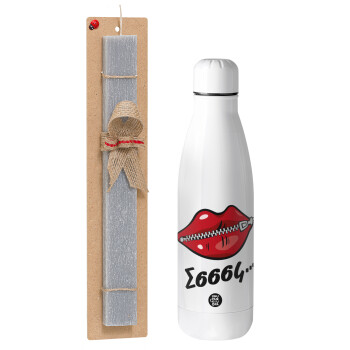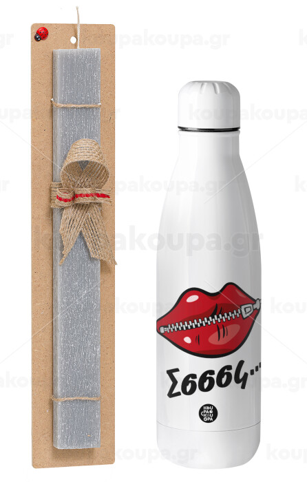 Σσσσς..., Πασχαλινή Λαμπάδα με μεταλλικό παγούρι θερμός ανοξείδωτο (500ml) & κερί αρωματικό πλακέ (30cm) (ΓΚΡΙ)