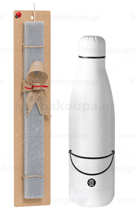 Χαμογέλα, Πασχαλινή Λαμπάδα με μεταλλικό παγούρι θερμός ανοξείδωτο (500ml) & κερί αρωματικό πλακέ (30cm) (ΓΚΡΙ)