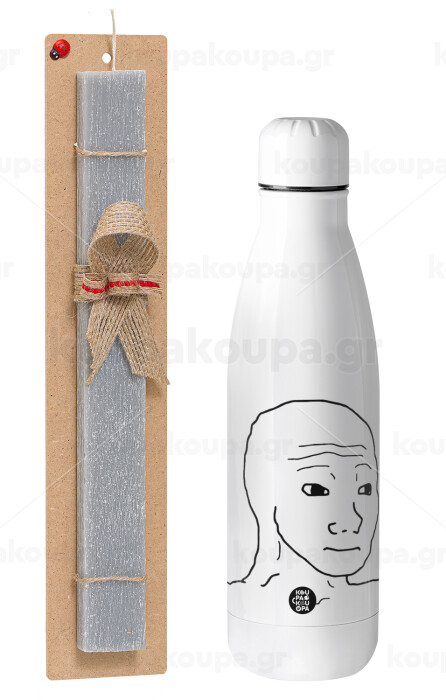Feel guy, Πασχαλινή Λαμπάδα με μεταλλικό παγούρι θερμός ανοξείδωτο (500ml) & κερί αρωματικό πλακέ (30cm) (ΓΚΡΙ)