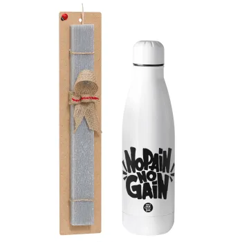 No pain no gain, Πασχαλινή Λαμπάδα με μεταλλικό παγούρι θερμός ανοξείδωτο (500ml) & κερί αρωματικό πλακέ (30cm) (ΓΚΡΙ)
