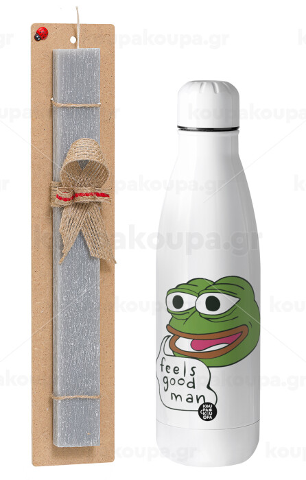 Pepe the frog, Πασχαλινή Λαμπάδα με μεταλλικό παγούρι θερμός ανοξείδωτο (500ml) & κερί αρωματικό πλακέ (30cm) (ΓΚΡΙ)