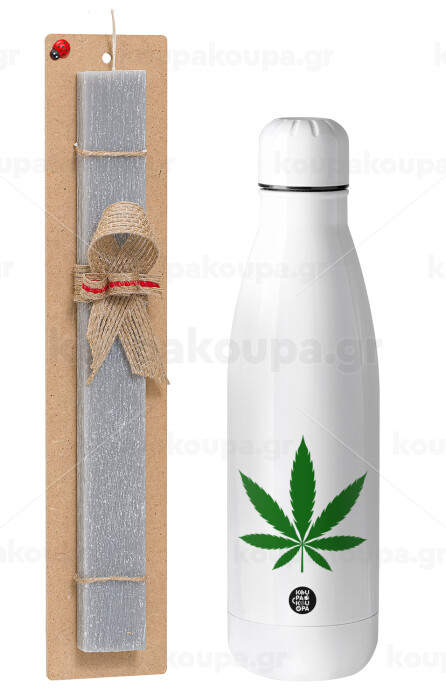 Weed, Πασχαλινή Λαμπάδα με μεταλλικό παγούρι θερμός ανοξείδωτο (500ml) & κερί αρωματικό πλακέ (30cm) (ΓΚΡΙ)