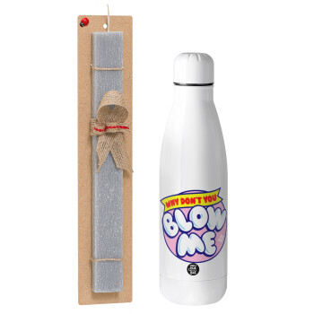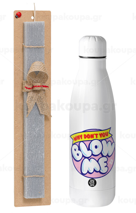 Why Don't You Blow Me Funny, Πασχαλινή Λαμπάδα με μεταλλικό παγούρι θερμός ανοξείδωτο (500ml) & κερί αρωματικό πλακέ (30cm) (ΓΚΡΙ)
