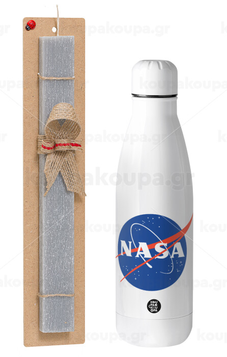 Nasa, Πασχαλινή Λαμπάδα με μεταλλικό παγούρι θερμός ανοξείδωτο (500ml) & κερί αρωματικό πλακέ (30cm) (ΓΚΡΙ)