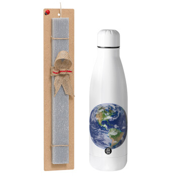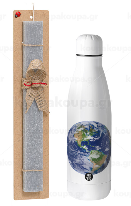 Planet Earth, Πασχαλινή Λαμπάδα με μεταλλικό παγούρι θερμός ανοξείδωτο (500ml) & κερί αρωματικό πλακέ (30cm) (ΓΚΡΙ)