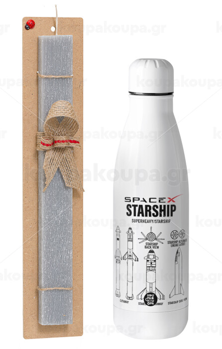 Space X, Πασχαλινή Λαμπάδα με μεταλλικό παγούρι θερμός ανοξείδωτο (500ml) & κερί αρωματικό πλακέ (30cm) (ΓΚΡΙ)