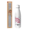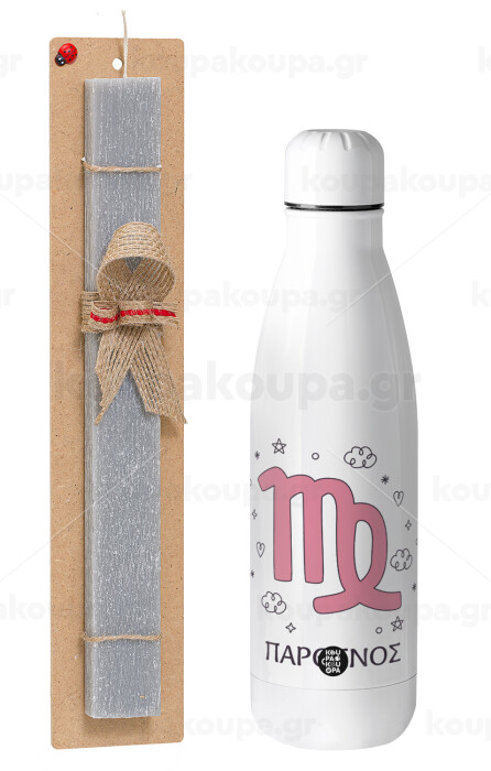 Ζώδια Παρθένος, Πασχαλινή Λαμπάδα με μεταλλικό παγούρι θερμός ανοξείδωτο (500ml) & κερί αρωματικό πλακέ (30cm) (ΓΚΡΙ)