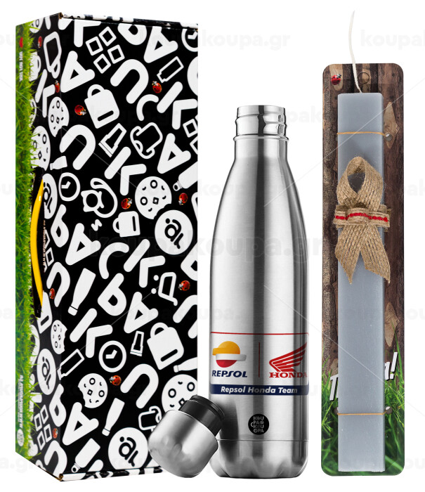 Honda Repsol Team, Πασχαλινή Λαμπάδα με μεταλλικό παγούρι θερμός ανοξείδωτο (500ml) & κερί αρωματικό πλακέ (30cm) (ΓΚΡΙ)