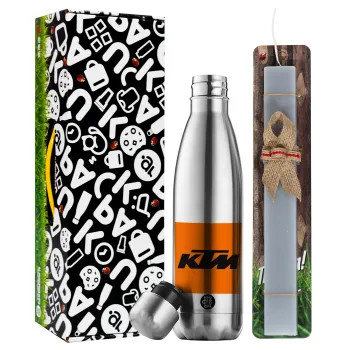 KTM, Πασχαλινή Λαμπάδα με μεταλλικό παγούρι θερμός ανοξείδωτο (500ml) & κερί αρωματικό πλακέ (30cm) (ΓΚΡΙ)