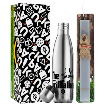 The Grillfather, Πασχαλινή Λαμπάδα με μεταλλικό παγούρι θερμός ανοξείδωτο (500ml) & κερί αρωματικό πλακέ (30cm) (ΓΚΡΙ)