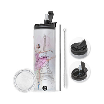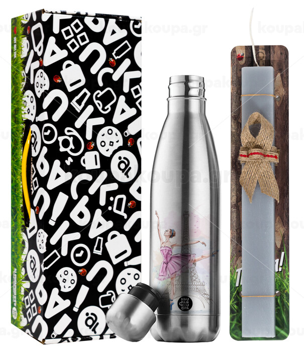 Ballerina in Paris, Πασχαλινή Λαμπάδα με μεταλλικό παγούρι θερμός ανοξείδωτο (500ml) & κερί αρωματικό πλακέ (30cm) (ΓΚΡΙ)