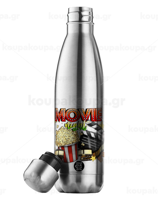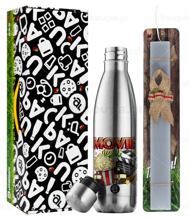 Movie night, Πασχαλινή Λαμπάδα με μεταλλικό παγούρι θερμός ανοξείδωτο (500ml) & κερί αρωματικό πλακέ (30cm) (ΓΚΡΙ)
