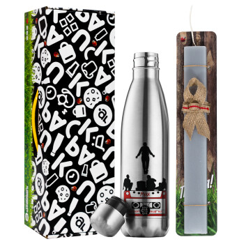 Running up that hill, Stranger Things, Πασχαλινή Λαμπάδα με μεταλλικό παγούρι θερμός ανοξείδωτο (500ml) & κερί αρωματικό πλακέ (30cm) (ΓΚΡΙ)