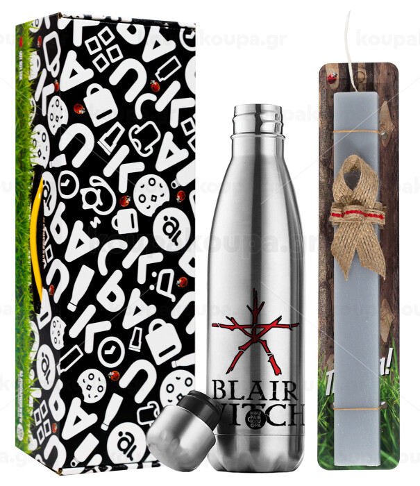 The Blair Witch Project , Πασχαλινή Λαμπάδα με μεταλλικό παγούρι θερμός ανοξείδωτο (500ml) & κερί αρωματικό πλακέ (30cm) (ΓΚΡΙ)
