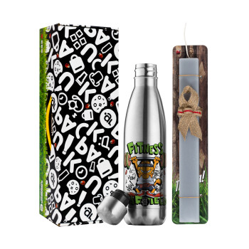 Πασχαλινή Λαμπάδα με μεταλλικό παγούρι θερμός ανοξείδωτο (500ml) & κερί αρωματικό πλακέ (30cm) (ΓΚΡΙ) με θέμα Παιδικά