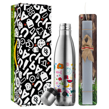 Παιδική φαντασία, Πασχαλινή Λαμπάδα με μεταλλικό παγούρι θερμός ανοξείδωτο (500ml) & κερί αρωματικό πλακέ (30cm) (ΓΚΡΙ)