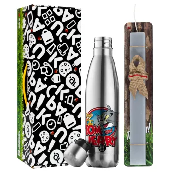 Τομ και Τζέρι, Πασχαλινή Λαμπάδα με μεταλλικό παγούρι θερμός ανοξείδωτο (500ml) & κερί αρωματικό πλακέ (30cm) (ΓΚΡΙ)