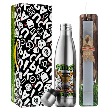 Garfield Fitness, Πασχαλινή Λαμπάδα με μεταλλικό παγούρι θερμός ανοξείδωτο (500ml) & κερί αρωματικό πλακέ (30cm) (ΓΚΡΙ)