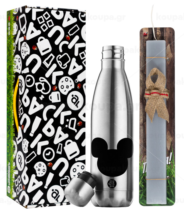 mouse man, Πασχαλινή Λαμπάδα με μεταλλικό παγούρι θερμός ανοξείδωτο (500ml) & κερί αρωματικό πλακέ (30cm) (ΓΚΡΙ)