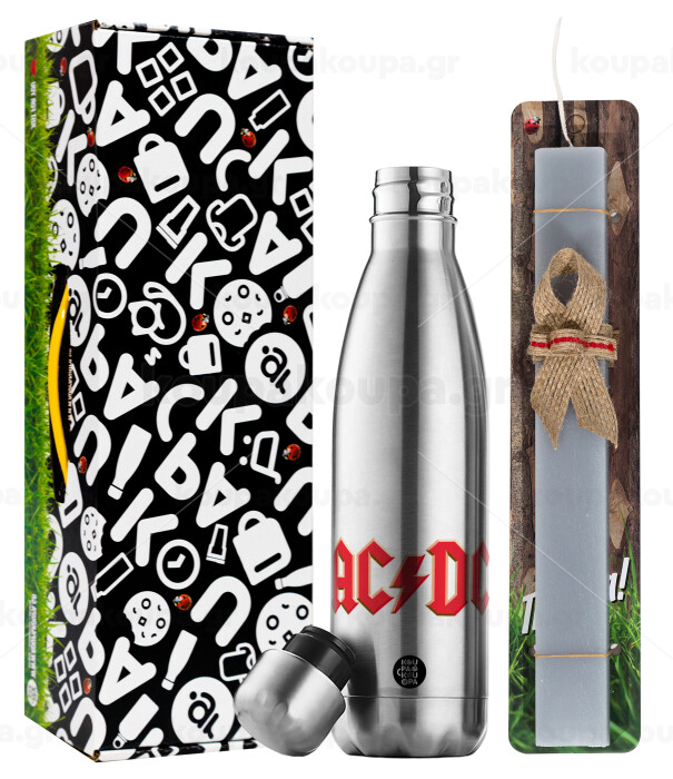 AC/DC, Πασχαλινή Λαμπάδα με μεταλλικό παγούρι θερμός ανοξείδωτο (500ml) & κερί αρωματικό πλακέ (30cm) (ΓΚΡΙ)