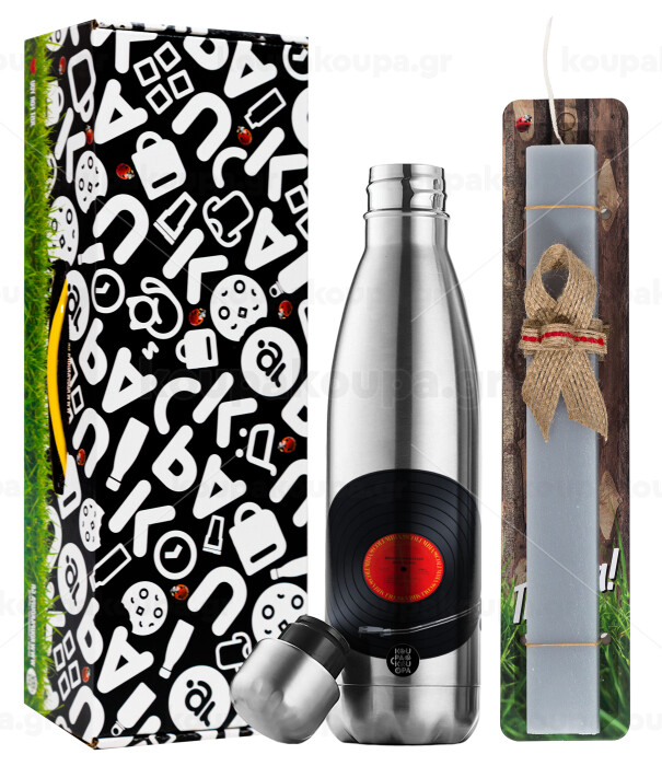 Columbia records bruce springsteen, Πασχαλινή Λαμπάδα με μεταλλικό παγούρι θερμός ανοξείδωτο (500ml) & κερί αρωματικό πλακέ (30cm) (ΓΚΡΙ)