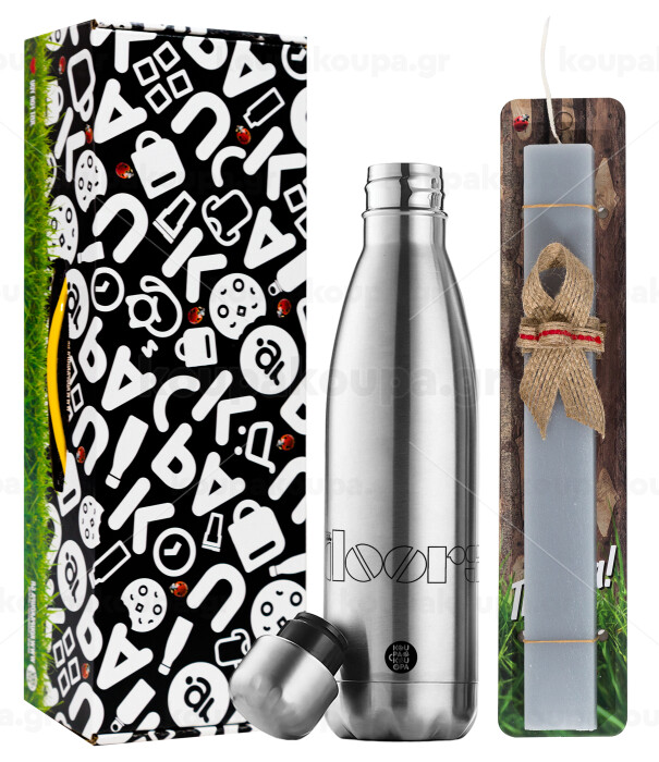 The Doors, Πασχαλινή Λαμπάδα με μεταλλικό παγούρι θερμός ανοξείδωτο (500ml) & κερί αρωματικό πλακέ (30cm) (ΓΚΡΙ)