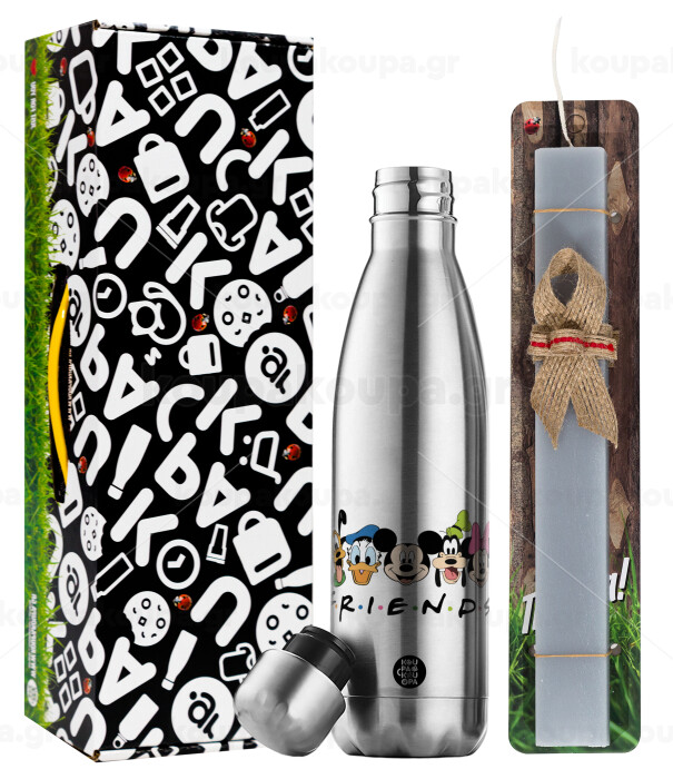 Friends characters, Πασχαλινή Λαμπάδα με μεταλλικό παγούρι θερμός ανοξείδωτο (500ml) & κερί αρωματικό πλακέ (30cm) (ΓΚΡΙ)