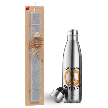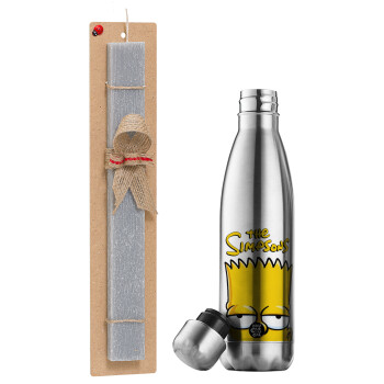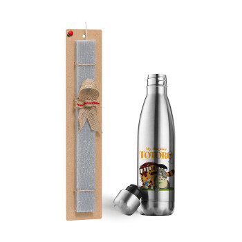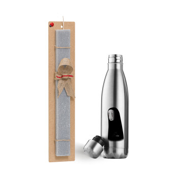 Friends turkey, Πασχαλινή Λαμπάδα με μεταλλικό παγούρι θερμός ανοξείδωτο (500ml) & κερί αρωματικό πλακέ (30cm) (ΓΚΡΙ)