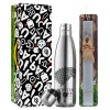 GOT House of Starks, winter coming, Πασχαλινή Λαμπάδα με μεταλλικό παγούρι θερμός ανοξείδωτο (500ml) & κερί αρωματικό πλακέ (30cm) (ΓΚΡΙ)