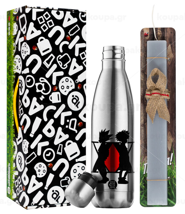 hunter x hunter, Πασχαλινή Λαμπάδα με μεταλλικό παγούρι θερμός ανοξείδωτο (500ml) & κερί αρωματικό πλακέ (30cm) (ΓΚΡΙ)