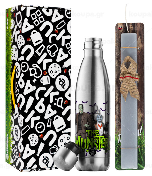 The munsters, Πασχαλινή Λαμπάδα με μεταλλικό παγούρι θερμός ανοξείδωτο (500ml) & κερί αρωματικό πλακέ (30cm) (ΓΚΡΙ)
