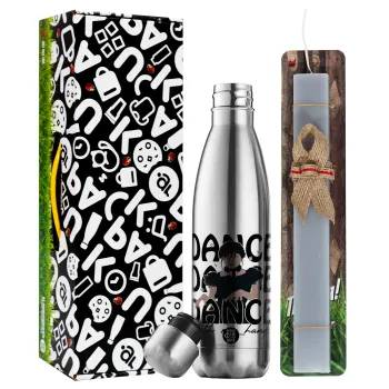 Wednesday dance dance dance, Πασχαλινή Λαμπάδα με μεταλλικό παγούρι θερμός ανοξείδωτο (500ml) & κερί αρωματικό πλακέ (30cm) (ΓΚΡΙ)