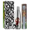 Cristiano Ronaldo, Πασχαλινή Λαμπάδα με μεταλλικό παγούρι θερμός ανοξείδωτο (500ml) & κερί αρωματικό πλακέ (30cm) (ΓΚΡΙ)