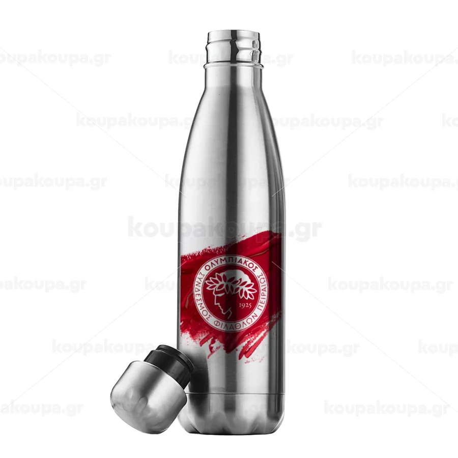 Olympiacos F.C., Πασχαλινή Λαμπάδα με μεταλλικό παγούρι θερμός ανοξείδωτο (500ml) & κερί αρωματικό πλακέ (30cm) (ΓΚΡΙ)