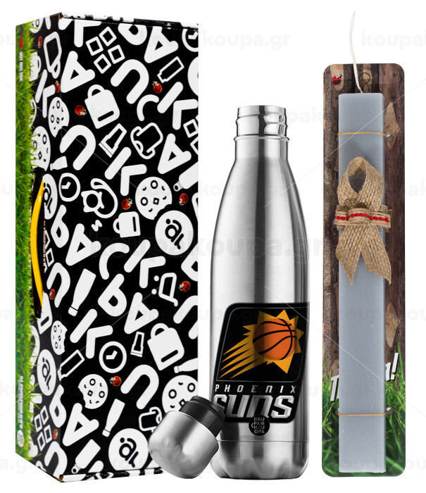 Phoenix Suns, Πασχαλινή Λαμπάδα με μεταλλικό παγούρι θερμός ανοξείδωτο (500ml) & κερί αρωματικό πλακέ (30cm) (ΓΚΡΙ)