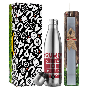 Τρίλιζα you won my heart, Πασχαλινή Λαμπάδα με μεταλλικό παγούρι θερμός ανοξείδωτο (500ml) & κερί αρωματικό πλακέ (30cm) (ΓΚΡΙ)